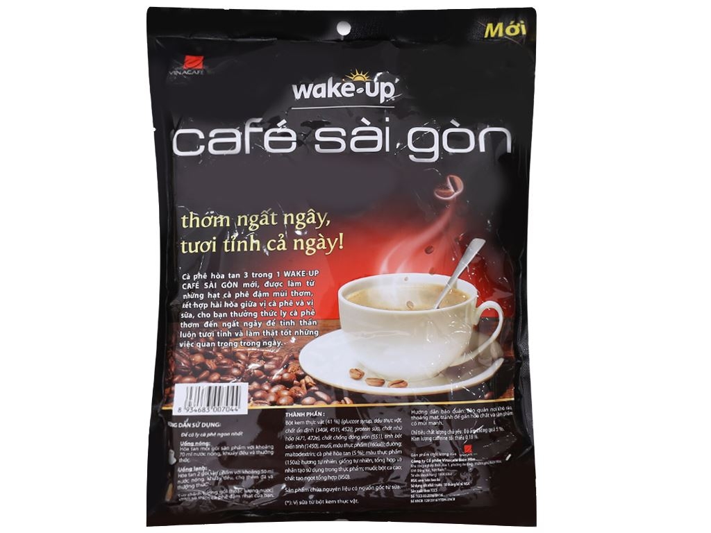 Wake Up Sài Gòn là dòng cà phê hòa tan đậm vị được phối trộn từ hạt cà phê Robusta và Arabica rang xay, mang đến hương thơm nồng nàn, vị đắng nhẹ hòa quyện cùng hậu ngọt đặc trưng – đúng chất cà phê Sài Gòn truyền thống.